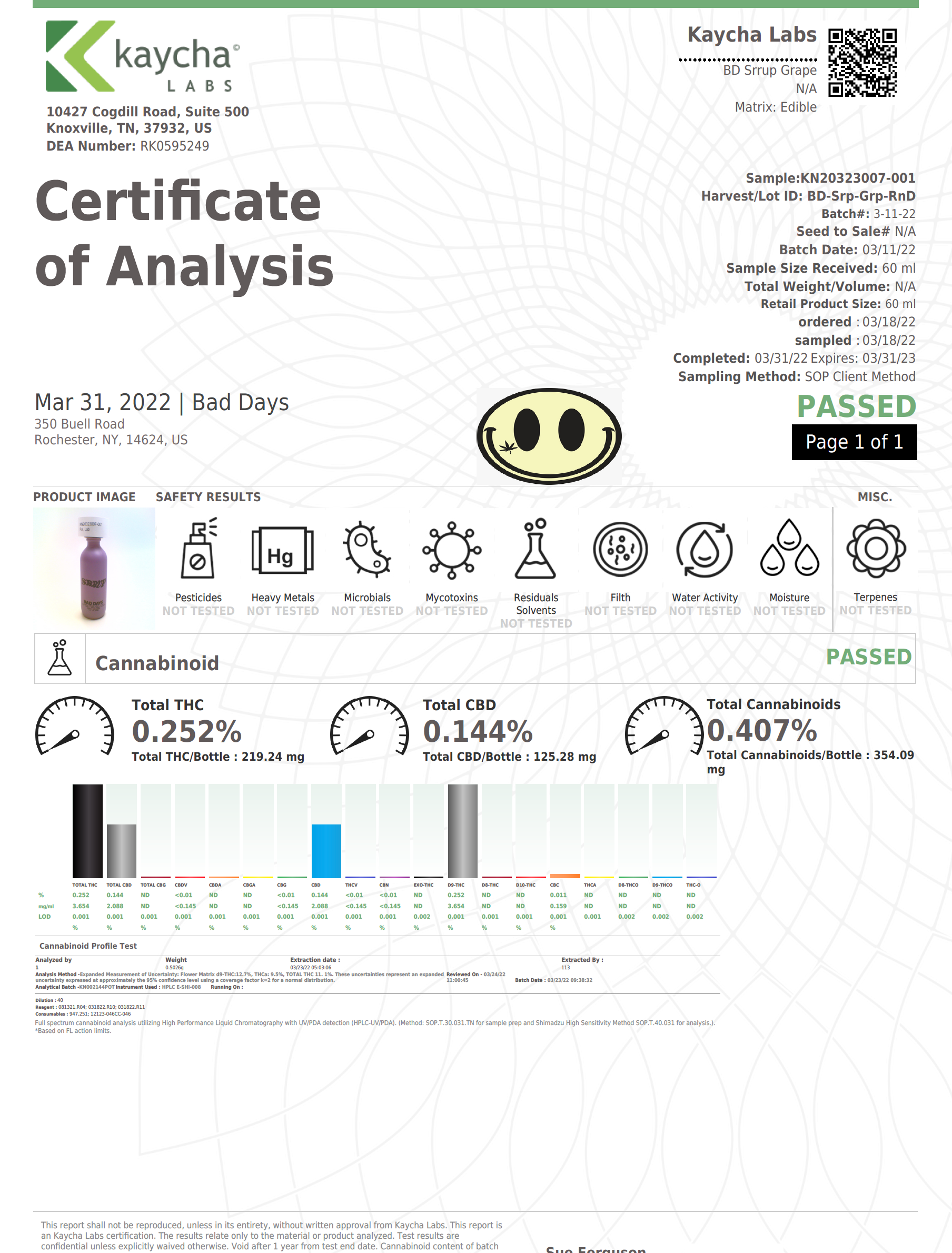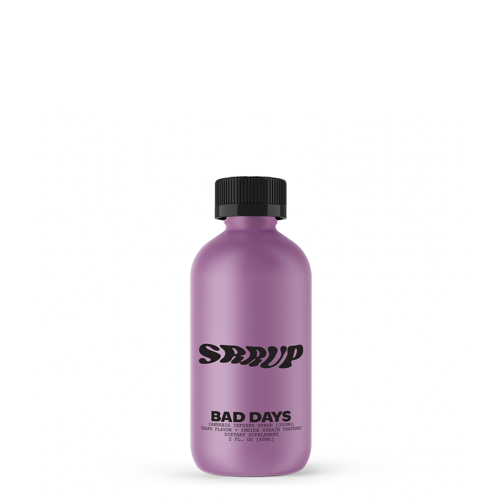 BAD DAYS SRRUP IS A SWEET AND DELICIOUS AGAVE BASED SYRUP WITH FAST-ACTING, POWERFUL EFFECTS. MADE WITH OUR PROPRIETARY NANO-EMULSIFIED, WATER SOLUBLE HEMP EXTRACT AND INDICA STRAIN TERPENES. VEGAN FRIENDLY AND MADE WITH NO ARTIFICIAL INGREDIENTS. ENJOY BY THE TEASPOON OR MIX WITH A BEVERAGE OF YOUR CHOICE.